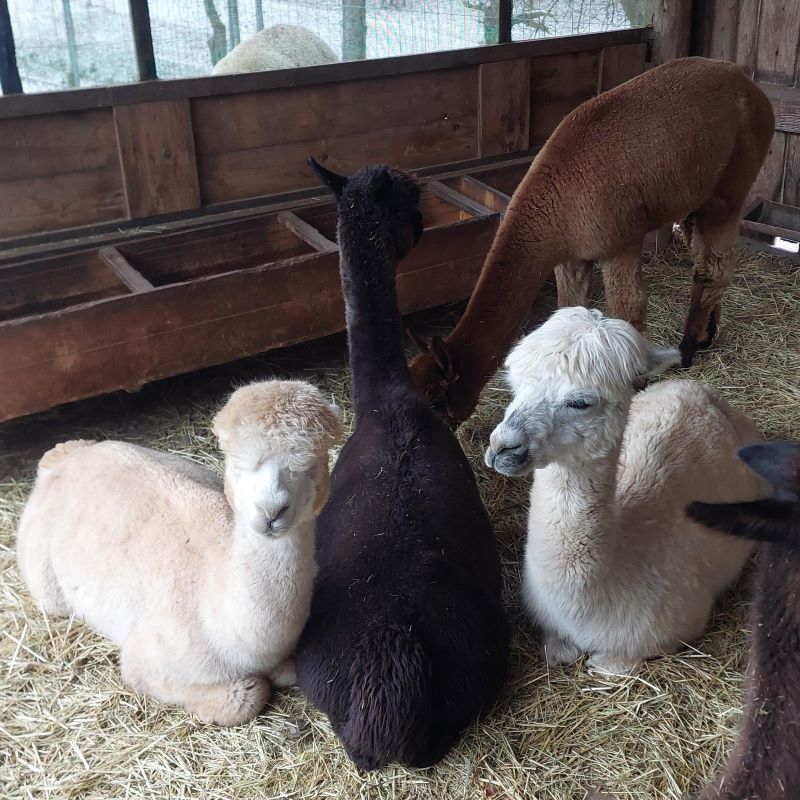 Und wenn ich mir das jetzt so überlege, wäre „symmetrisches Formationssitzen“ eigentlich fast eine eigene Kategorie wert. Sie (also die Alpakas im Allgemeinen) üben sich immer mal wieder darin… na mal kieken, ob’s da dieses Jahr mehr davon gibt.