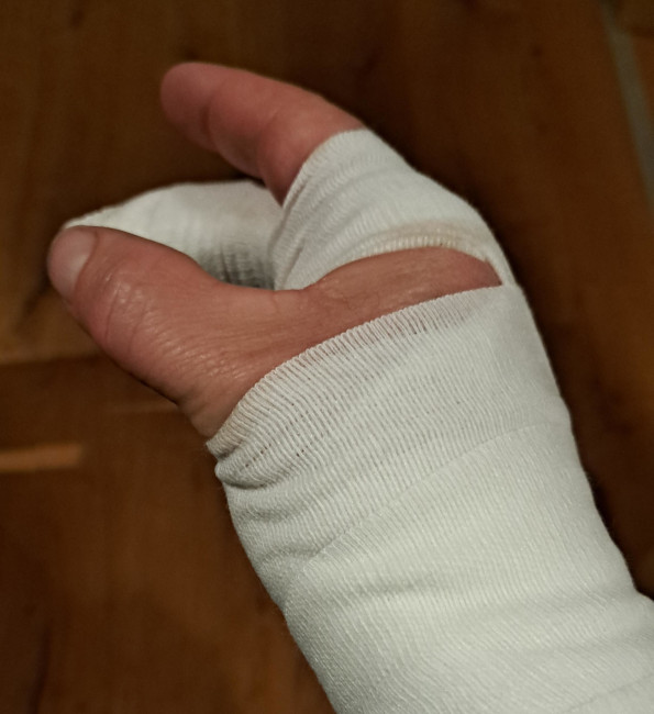 Sechs Wochen mindestens außer Gefecht gesetzt… mit einem blöden Bruch über dem Gelenk des kleinen Fingers. Rechts natürlich. So war dann der Stand der Dinge am Freitagabend. Wobei wir da noch nicht wussten, wie sehr die Ärzte mit dem Bruch hadern würden und wie oft sie nachschauen werden würden, ob sie nun operieren müssen oder nicht.